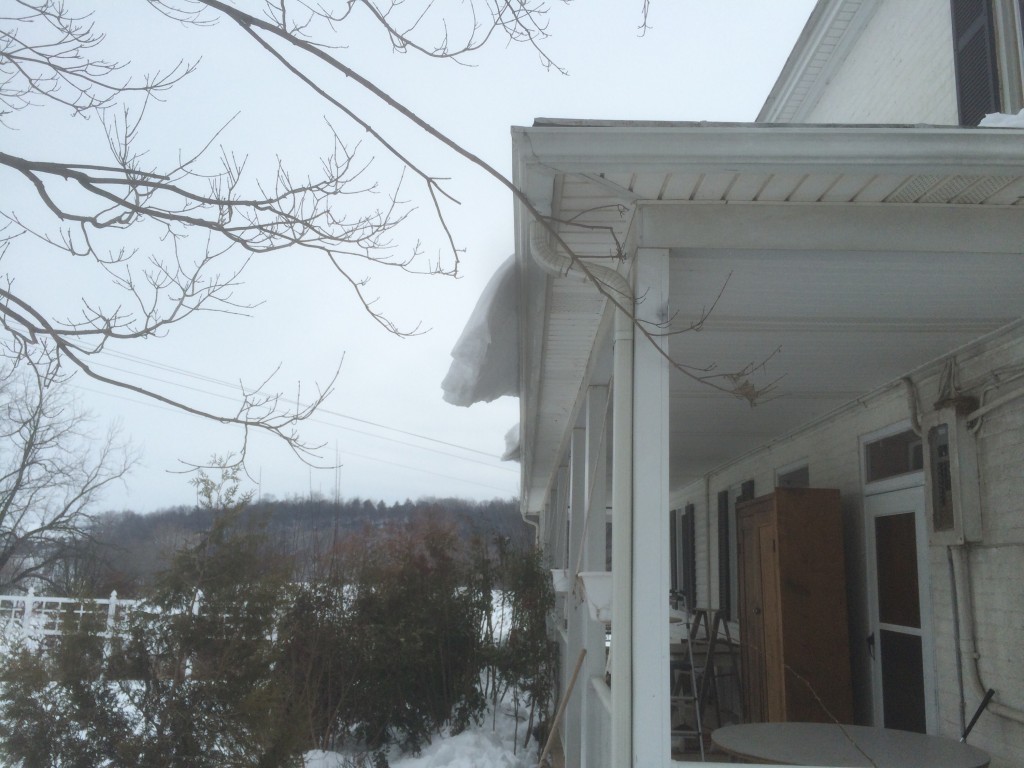 Did you have snow hanging out over your gutters like this during the recent snow in the Harrisonburg, Staunton and Waynesboro area? If so you should consider a snow retention system or snow guards to protect your guttering and shrubs from getting damaged! Call us today for a free estimate! (540)8202705